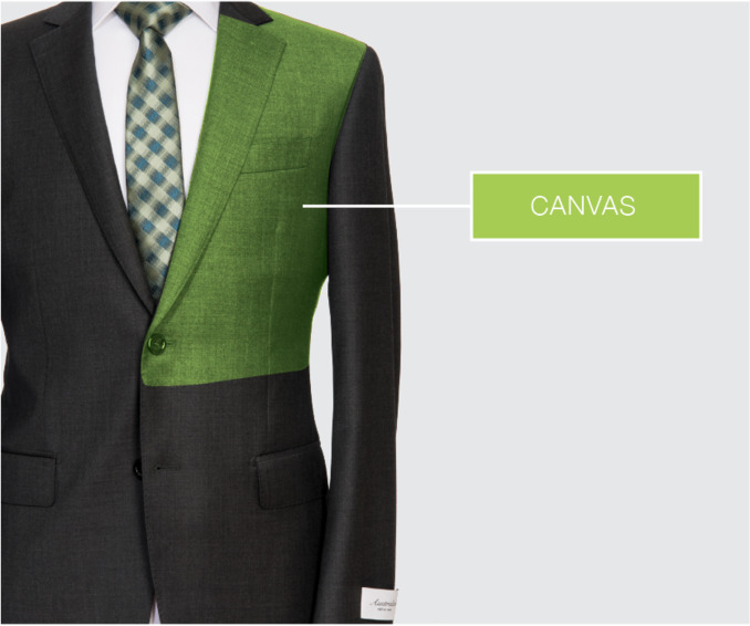 This is a horsehair canvas piece which is sewn between the lining and the jacket (upper halve). The canvass allows the suit to drape naturally and mould to the body over time. This form of construction increases the life of the jacket and gives it a superior, tailored finish.
