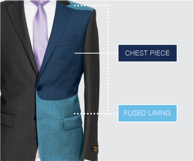 This is an interlining that is heat pressed (glued) to the wool of the suit. The suit tends to have some stiffness to the chest. The mass market of suits are generally constructed this way as it’s more cost effective to produce.